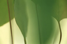 Using a 9" x 12" color corrected light box, we composed our subjects looking for interesting overlapping shapes with varying light showing through. We took a meter reading off the subject and bracketed our exposures by 1/2 stops in both directions. We used a Nikon 55mm macro lense stopped down to f/16. Since shutter speeds are very slow using 100 asa film, it's important to use a tripod. See samples below. |